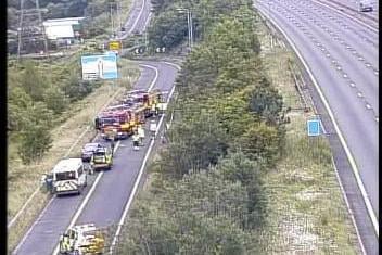 New road has been blocked after a collision between a lorry and a motorbike, according too traffic management system inrix.